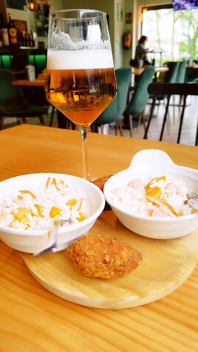 Buen lugar para tomar unas cañas, comer o cenar, carta diferente e innovadora. Tiene una terraza completamente cerrada con lo cual no importa la lluvia. Nosotros eramos dos nos acercamos a tomar unas cañas y acabamos comiendo el menú del día en fin de semana.Los camareros muy atentos y agradables. Un punto a destacar es que la comida llega volando a la mesa. Dos menús de fin de semana con un postre espectacular, la tarta de queso invertida, ¡que manjar!y 5 cañas sobre 45€. para repetir.
